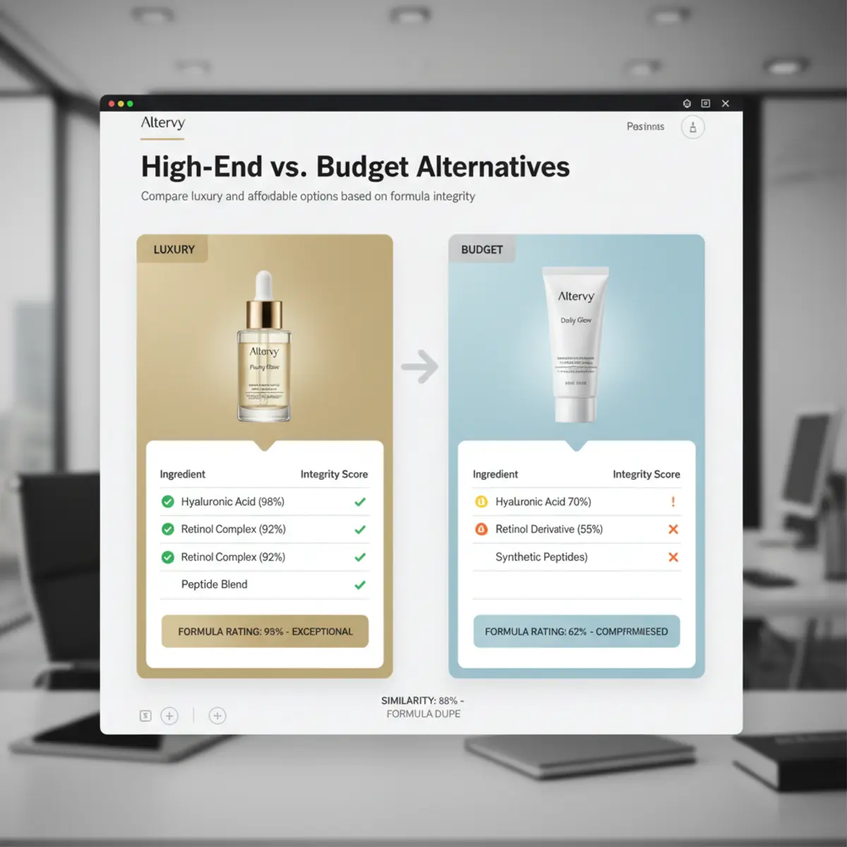 Altervy helps you compare expensive products with their budget-friendly counterparts, focusing on whether the core formula integrity, active ingredients, and...